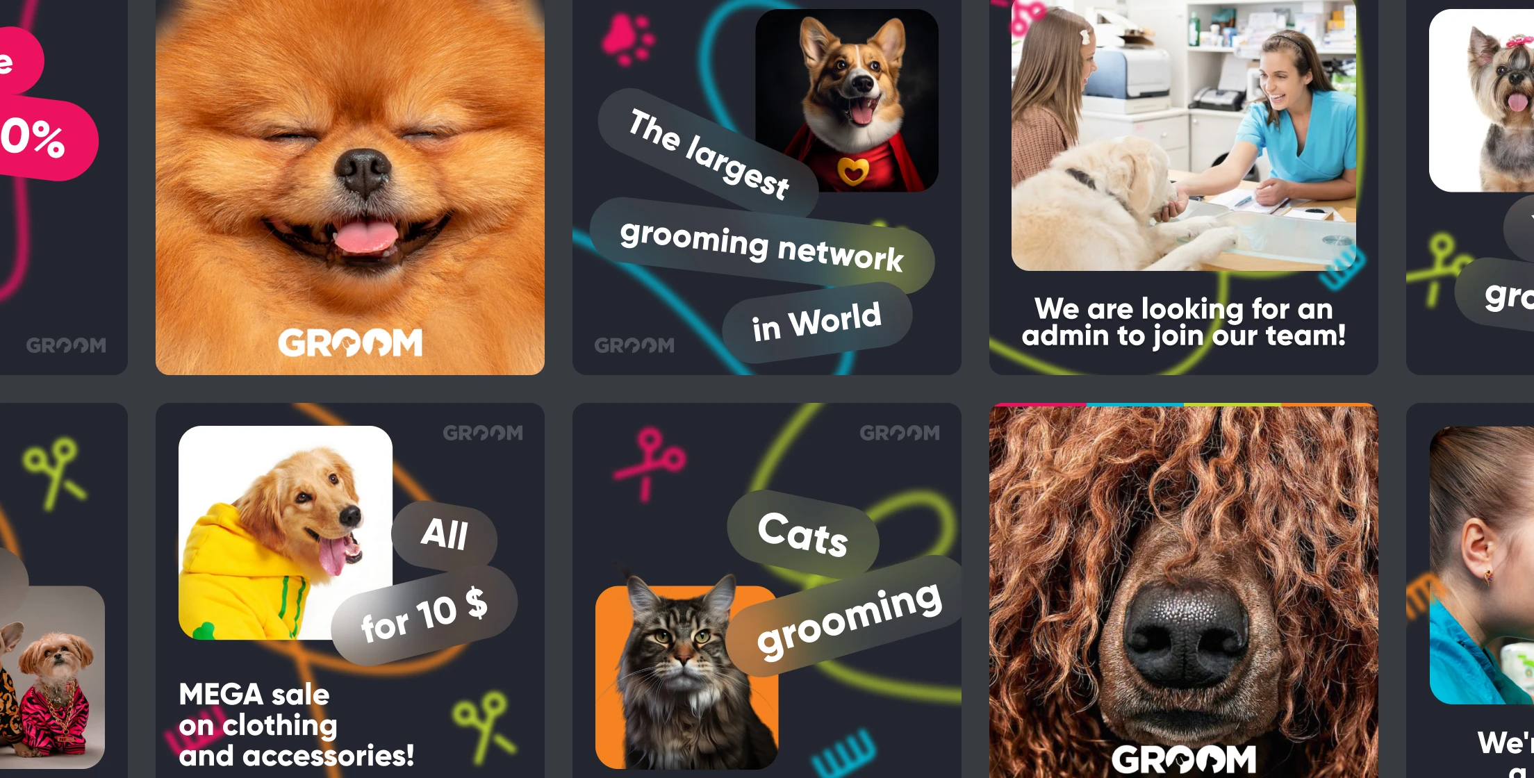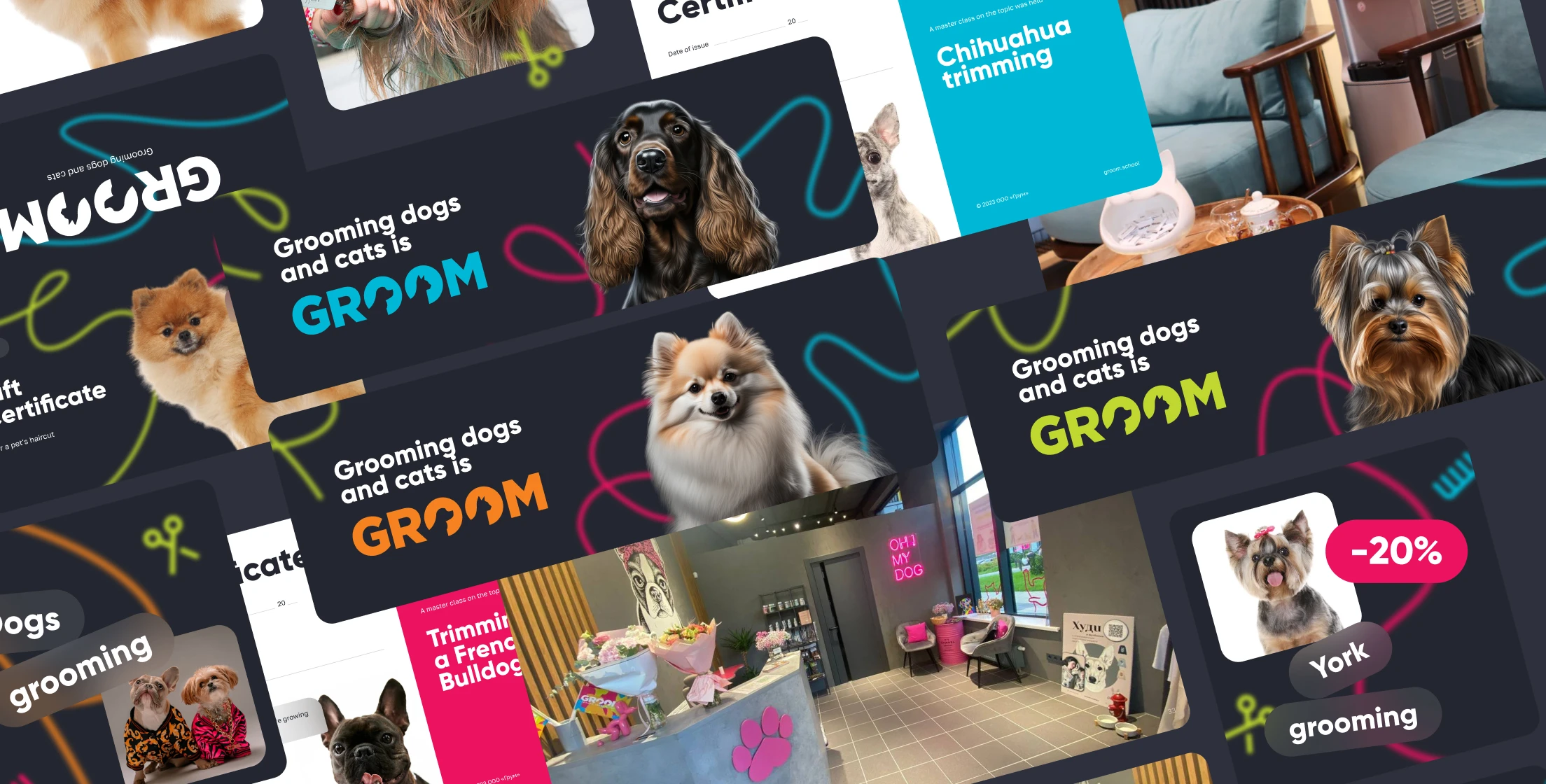Today, Groom is a full ecosystem consisting of 210 grooming salons, a call center, a franchising division, and grooming academies licensed by the Ministry of Education. We have published a textbook titled “The Encyclopedia of Grooming” and launched an innovative production of cosmetic products for pets.